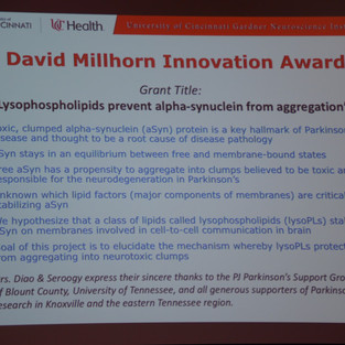 The "Dr. David Millhorn Innovation Award" was presented to DR JJ DIAO , PROFESSOR OF NEUROLOGY AT THE UNIVERSITY OF CINCINNATI COLLEGE OF MEDICINE.
